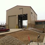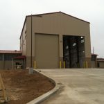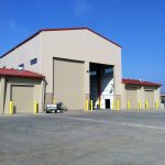 This project which is located in Camp Pendleton, CA is a Nucor pre-engineered metal building. It consists of insulated wall panel and a 5 ton top running bridge crane. It also has banded R30 PSK-VR insulation under a standing seam metal roof. This building was used for the maintenance of military tanks.